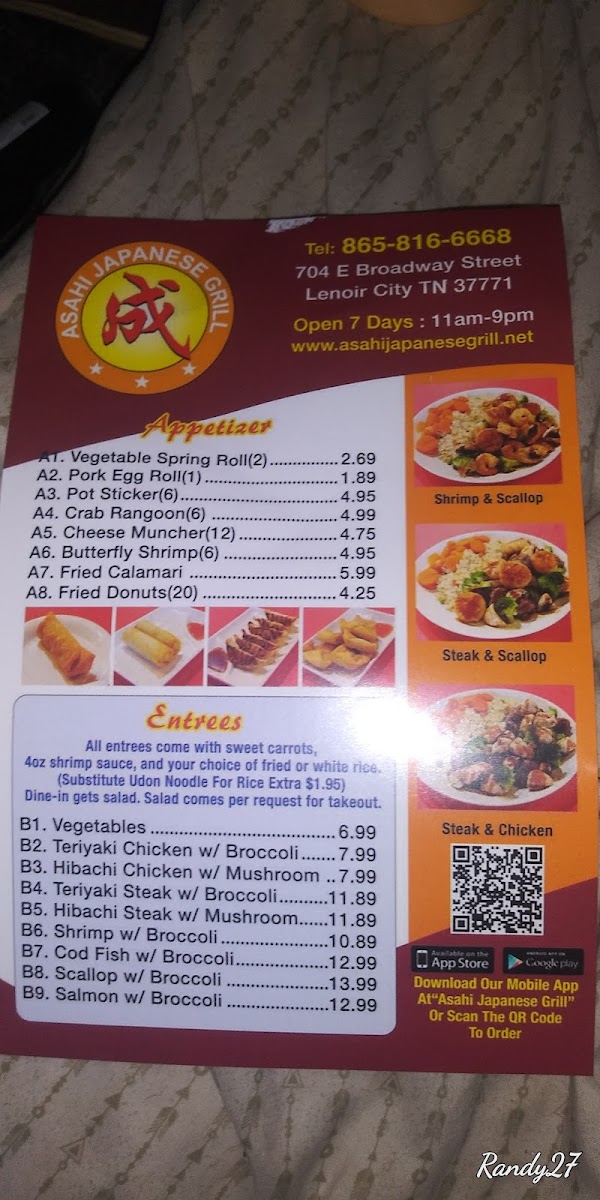 Welcome to Asahi Japanese Grill, Lenoir City’s hidden gem located at 704 E Broadway St. This enchanting restaurant delivers an authentic Japanese culinary experience, perfect for lunch or a special occasion. The menu is thoughtfully crafted, featuring fresh ingredients that shine in every dish.